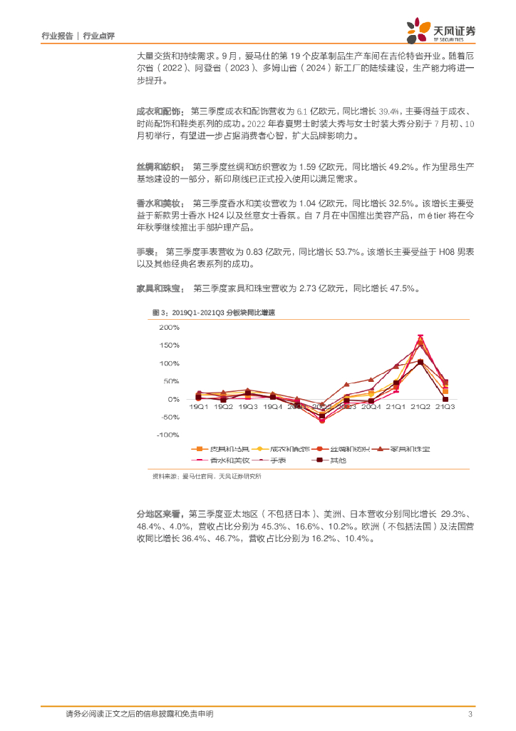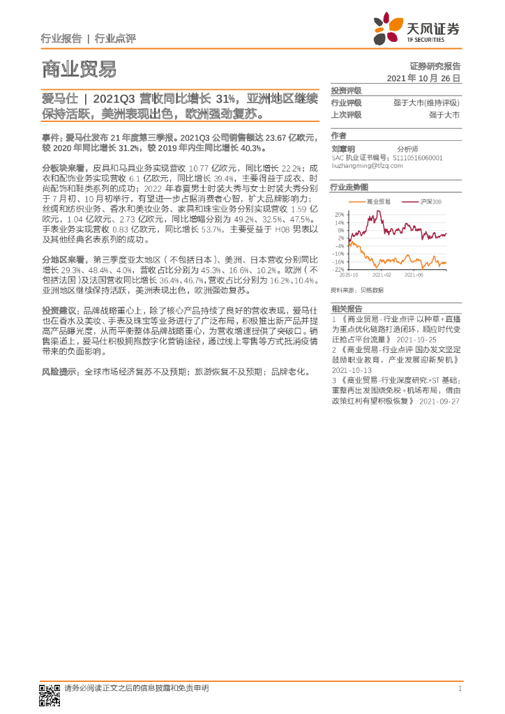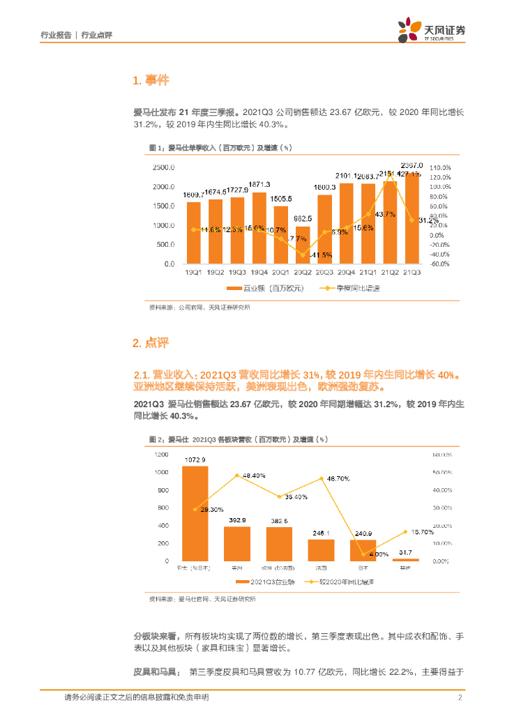 天风证券:商业贸易:爱马仕|2021Q3营收同比增长31%,亚洲地区继续保持活跃,美洲表现出色,欧洲强劲复苏。.pdf