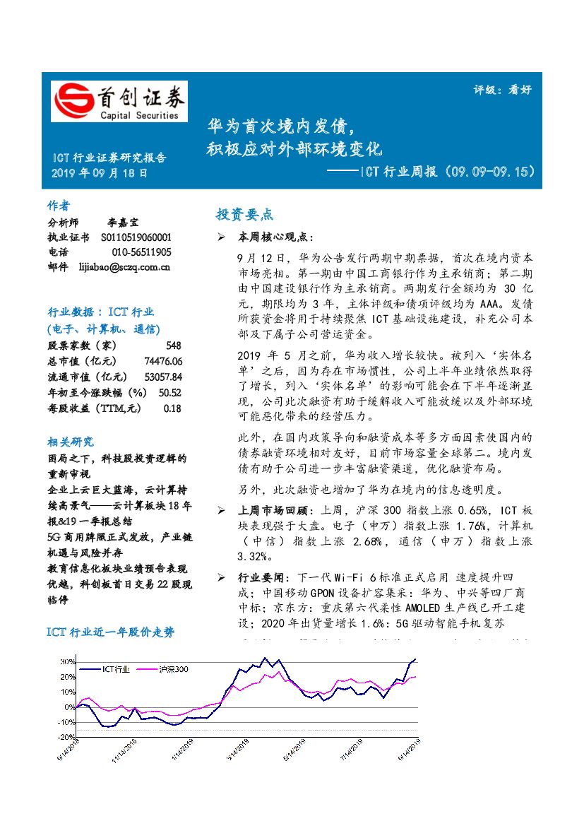 首创证券:ICT行业周报:华为首次境内发债,积极应对外部环境变化.pdf