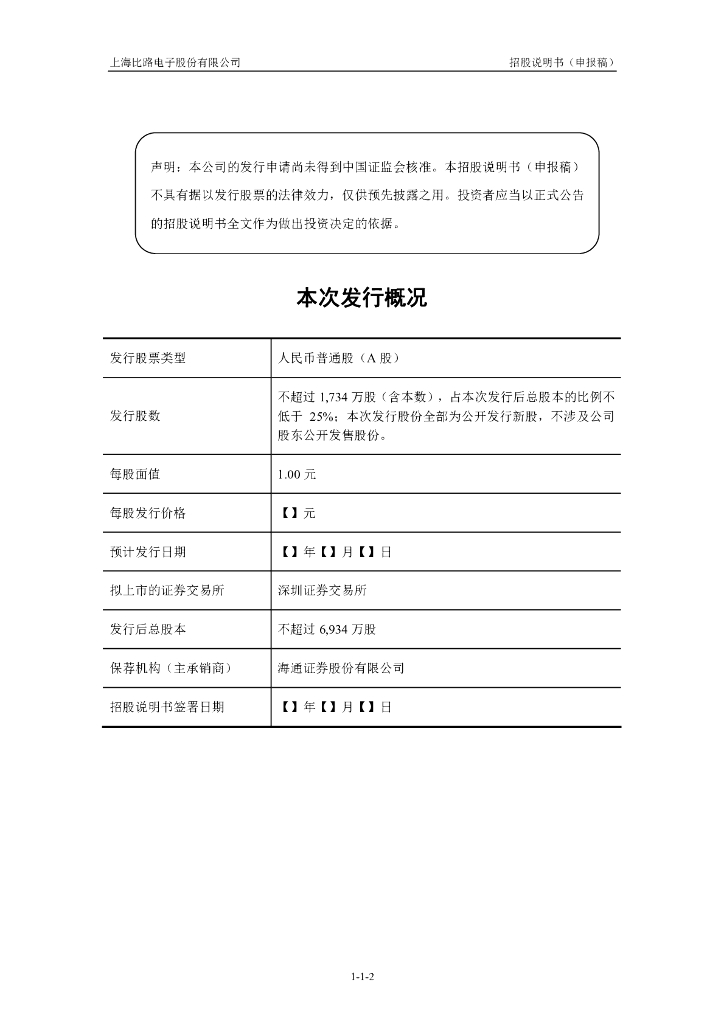 上海比路电子股份有限公司深交所创业板IPO上市招股说明书.pdf
