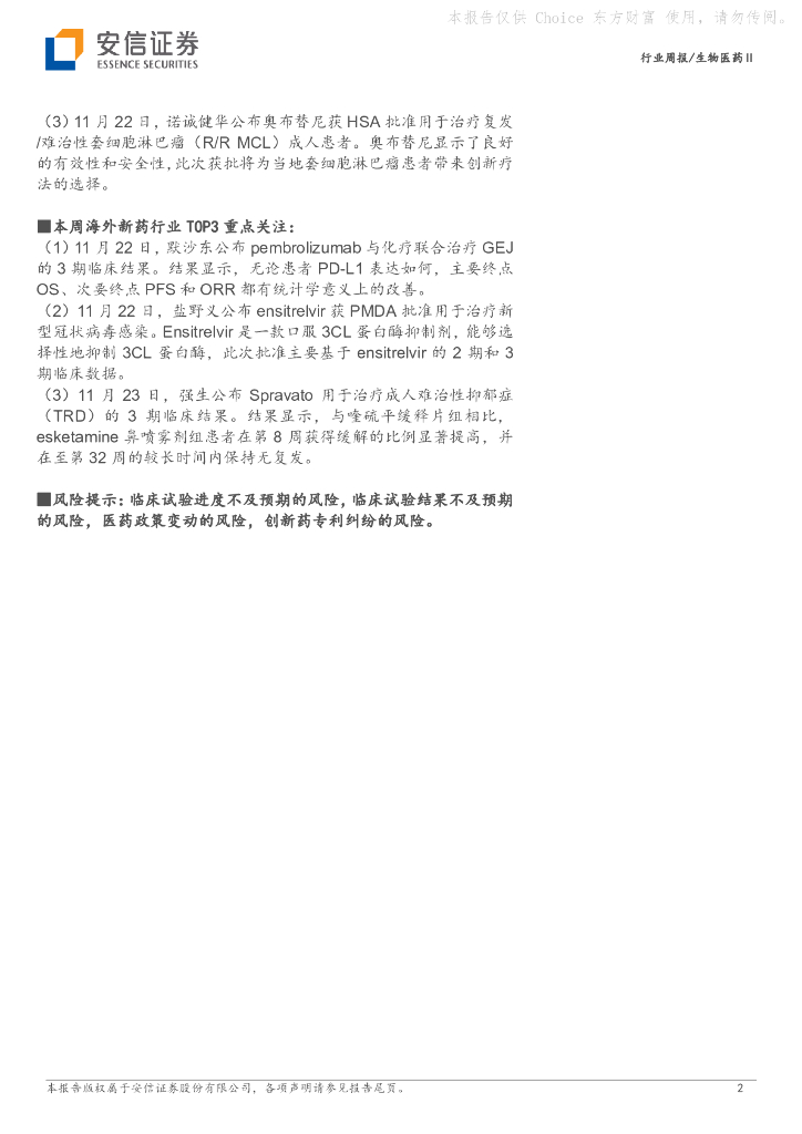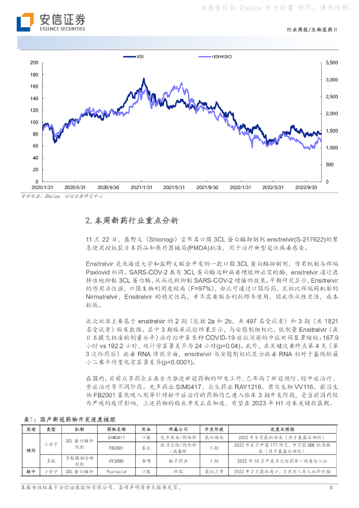 安信证券:新药周观点:盐野义新冠口服药Ensitrelvir日本获批,国内新冠药物开发加速.pdf