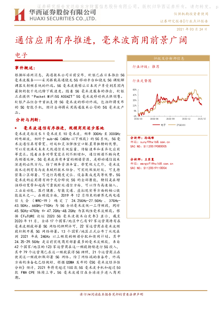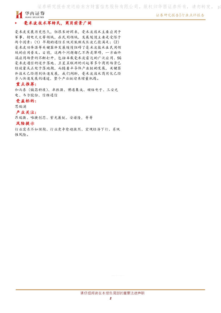 华西证券:电子行业点评报告:通信应用有序推进,毫米波商用前景广阔.pdf
