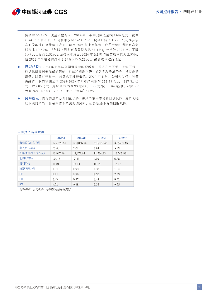 中国银河:保利发展(600048)-2024年半年报点评:营收同比正增长,合理控制投资节奏.pdf