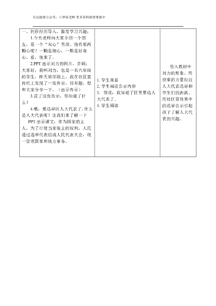 道德与法制6.人大代表为人民教案 第1课时 教案.doc