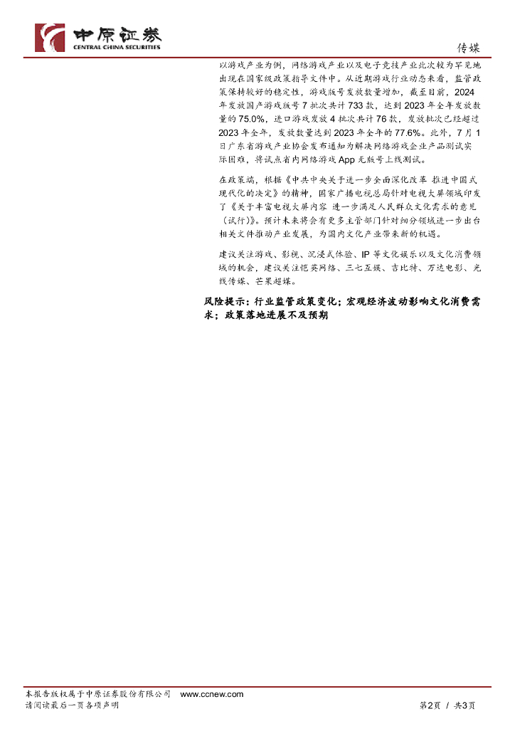 中原证券:传媒行业月报:业绩优异+政策利好+AI驱动,持续看好游戏板块表现