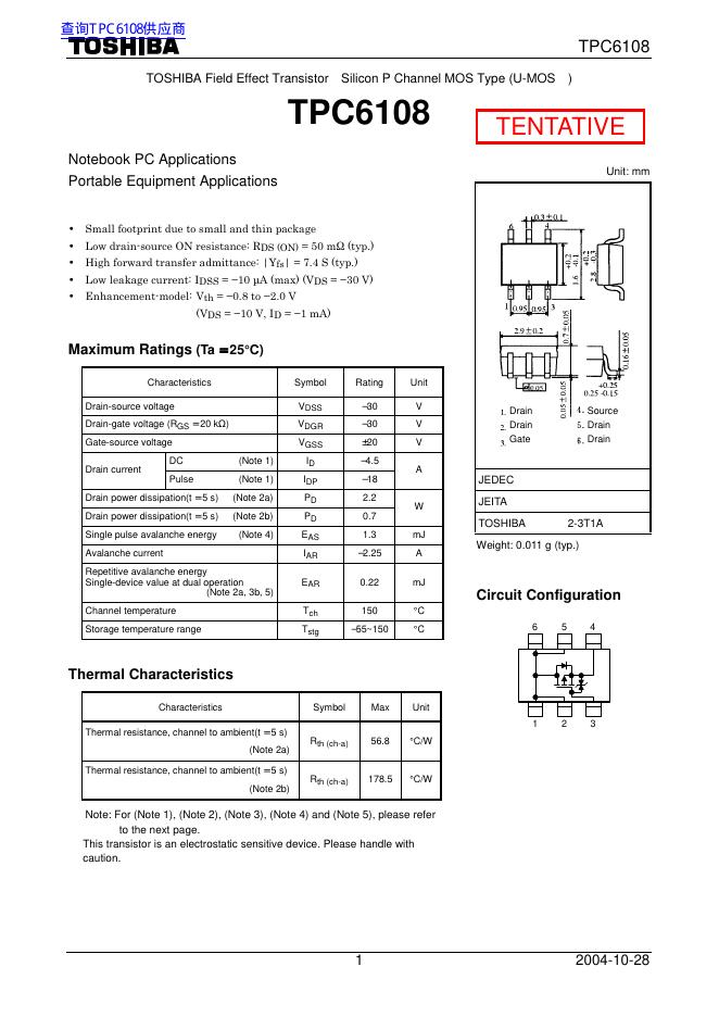 东芝 TPC6108 数据手册.pdf