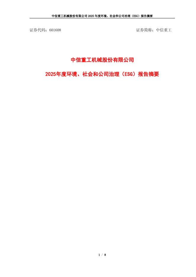 601608-中信重工:中信重工2025年度环境、社会和公司治理(ESG)报告摘要.pdf