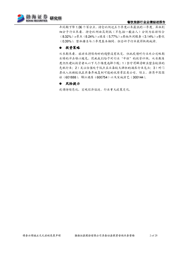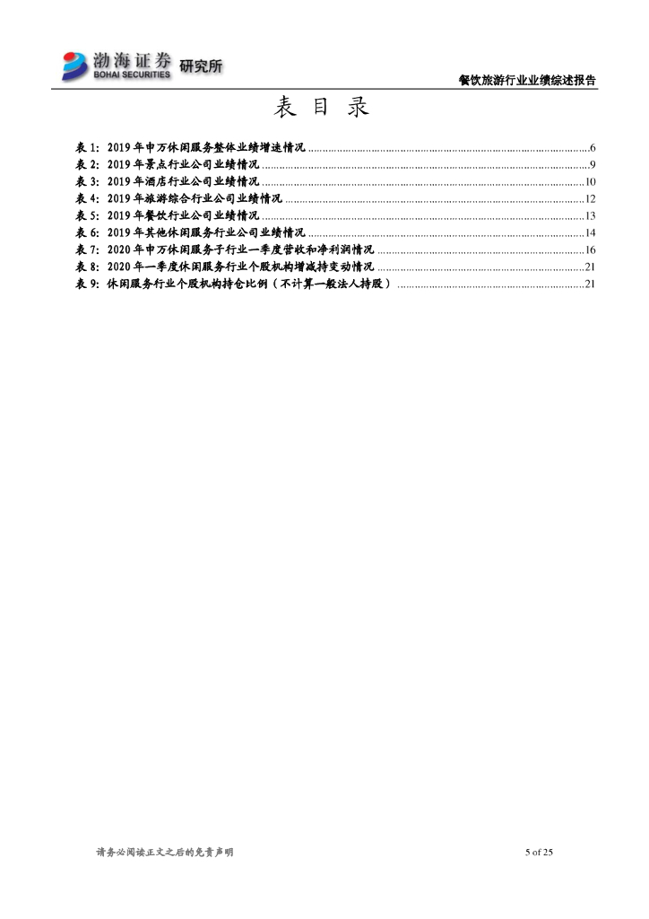 渤海证券:休闲服务行业2019年报及2020一季报业绩综述:疫情拖累一季度业绩 坚守价值关注细分行业龙头.pdf