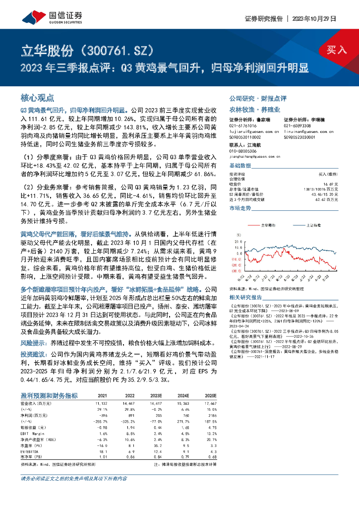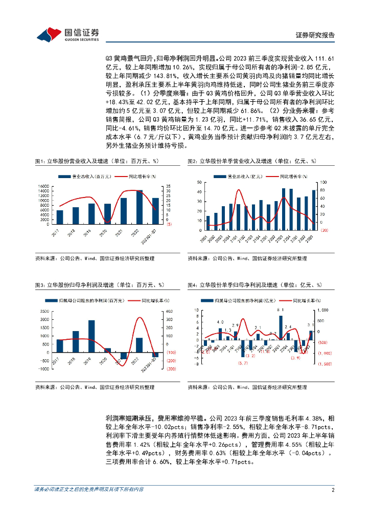 国信证券:立华股份(300761)-2023年三季报点评:Q3黄鸡景气回升,归母净利润回升明显.pdf