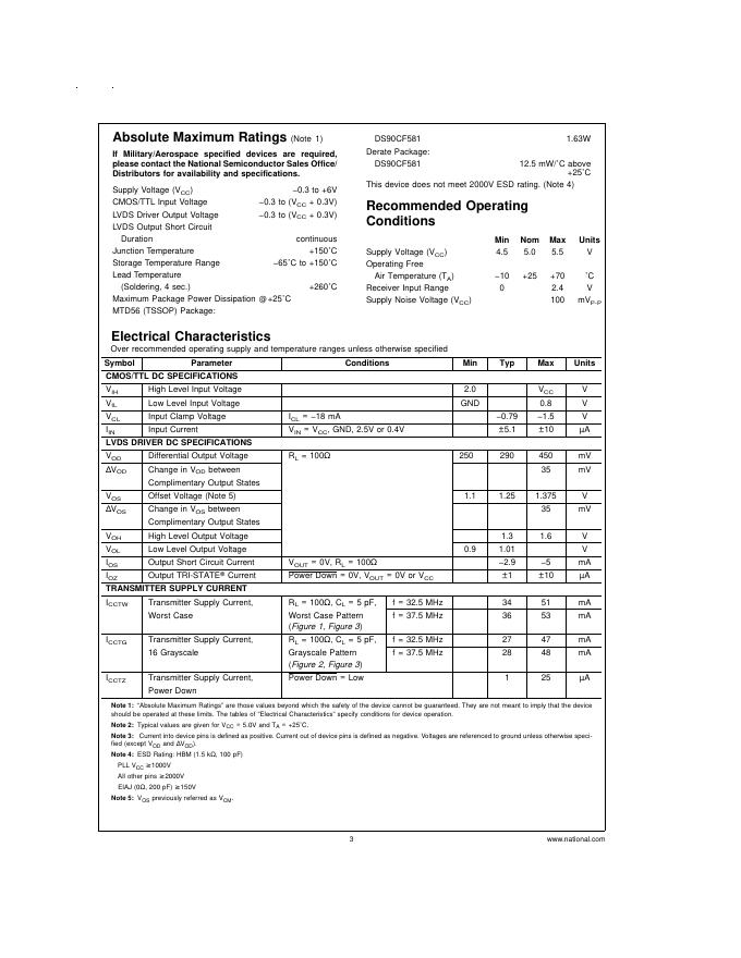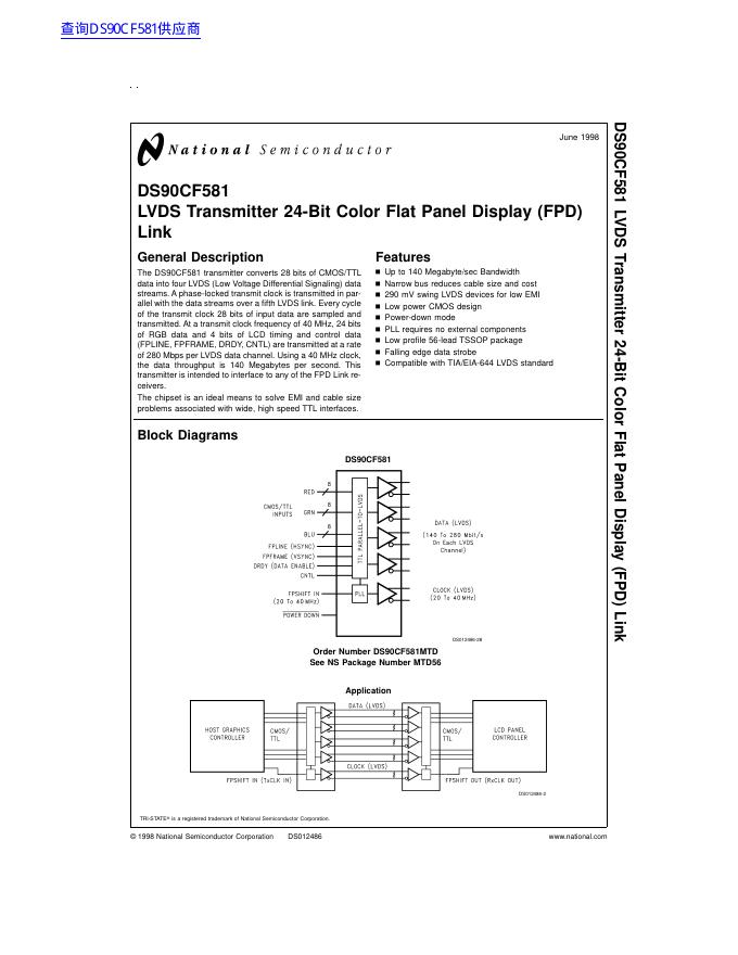 National Semiconductor DS90CF581 LVDS Transmitter 24-Bit Color Flat Panel Display (FPD) Link 数据手册.pdf
