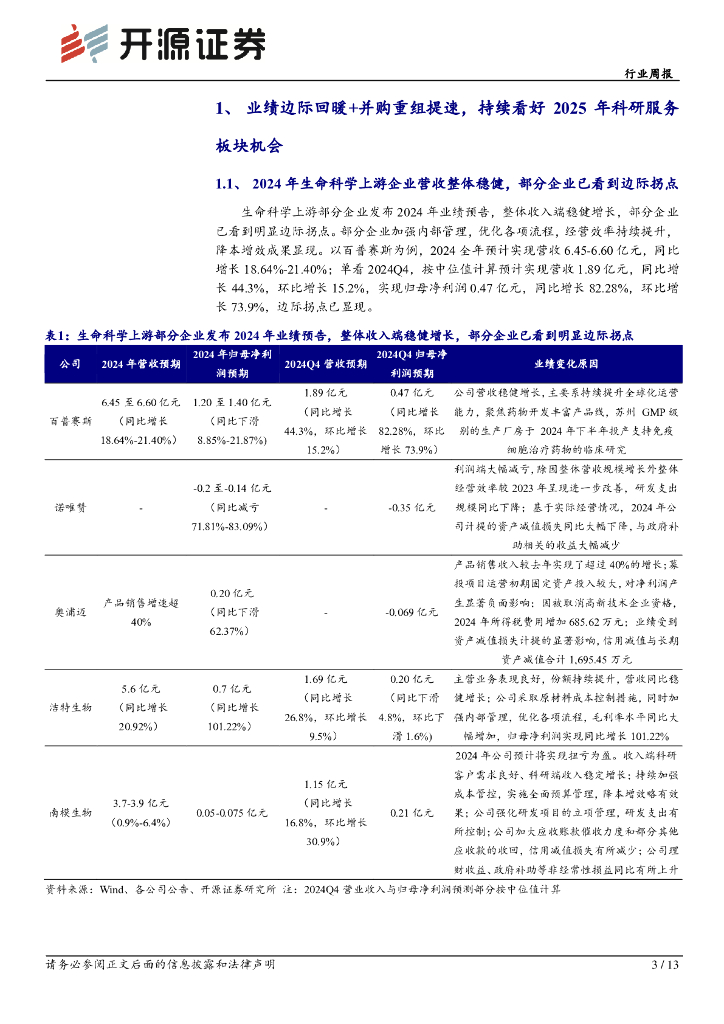 开源证券:医药生物行业周报:业绩边际回暖+并购重组提速,持续看好2025年科研服务板块机会.pdf