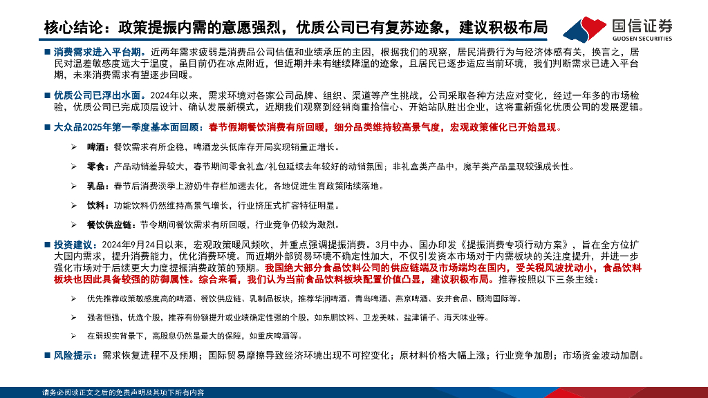 国信证券:大众品行业2025年第二季度投资策略报告:提振内需政策持续发力,优质公司已有复苏迹象.pdf