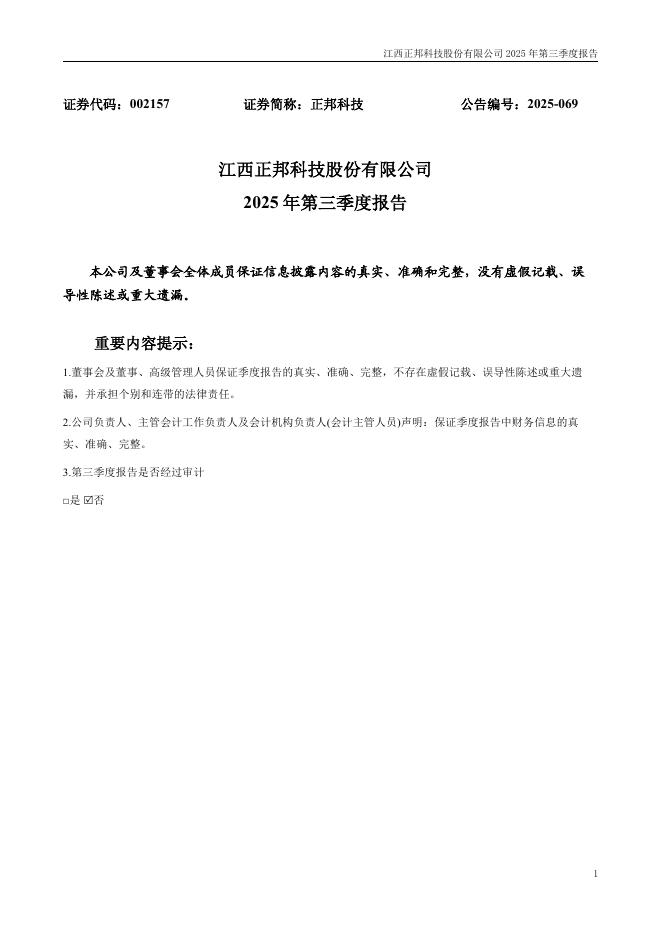 002157-正邦科技:2025年三季度报告.pdf