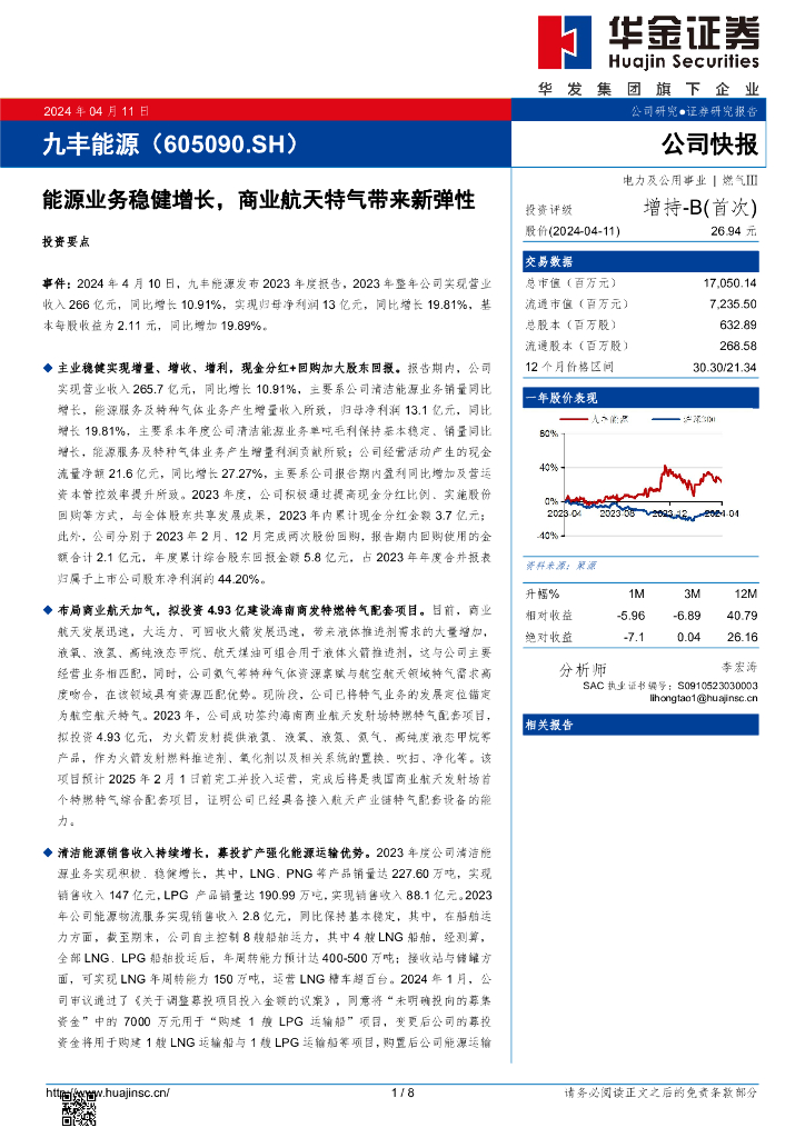 华金证券:九丰能源(605090)-能源业务稳健增长,商业航天特气带来新弹性.pdf