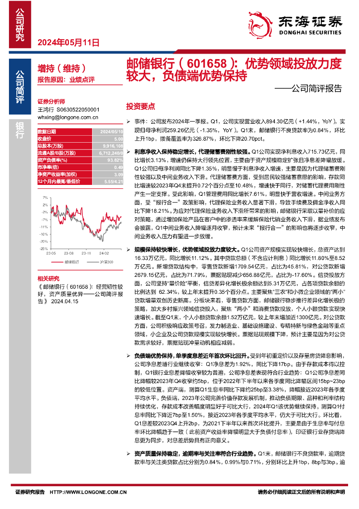 东海证券:邮储银行(601658)-公司简评报告:优势领域投放力度较大,负债端优势保持.pdf