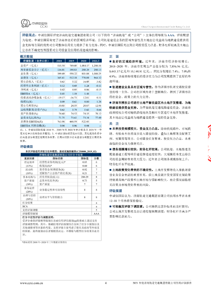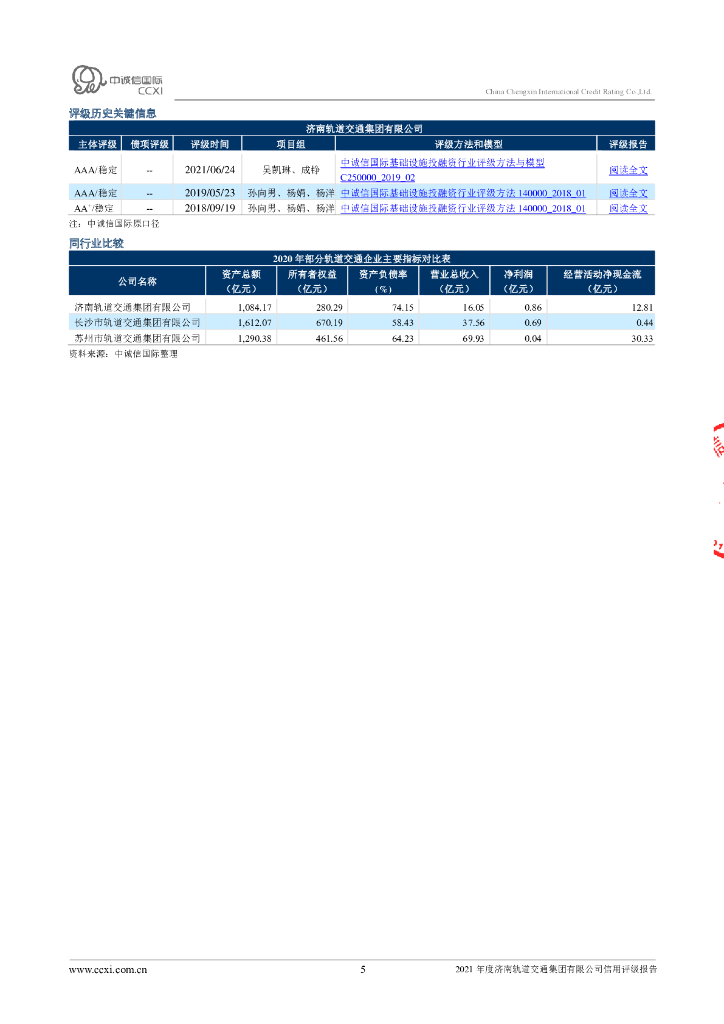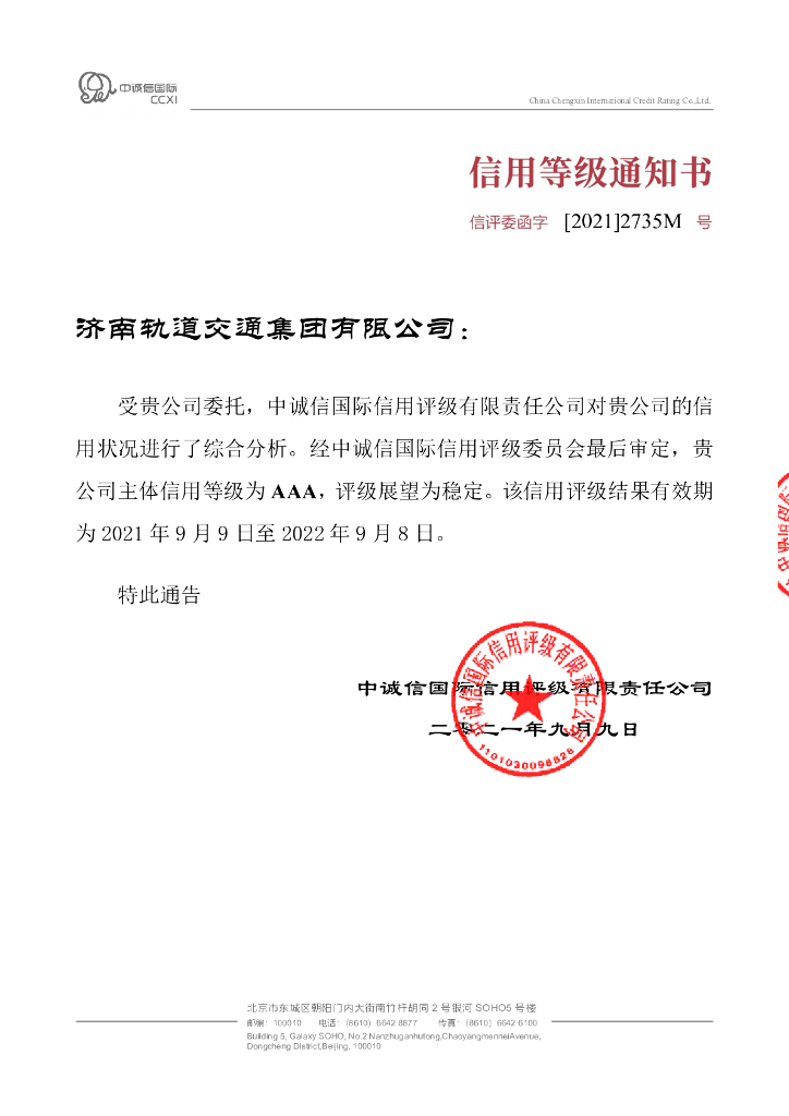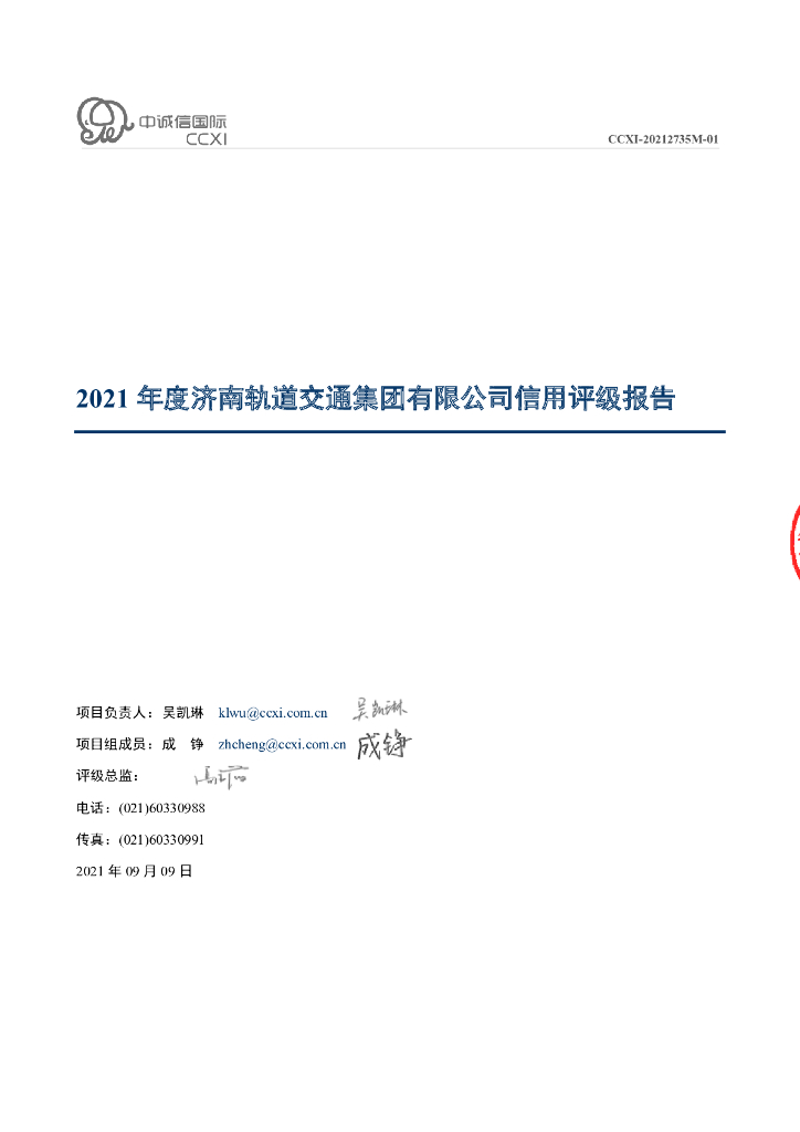 中诚信:2021年度济南轨道交通集团有限公司信用评级报告.pdf