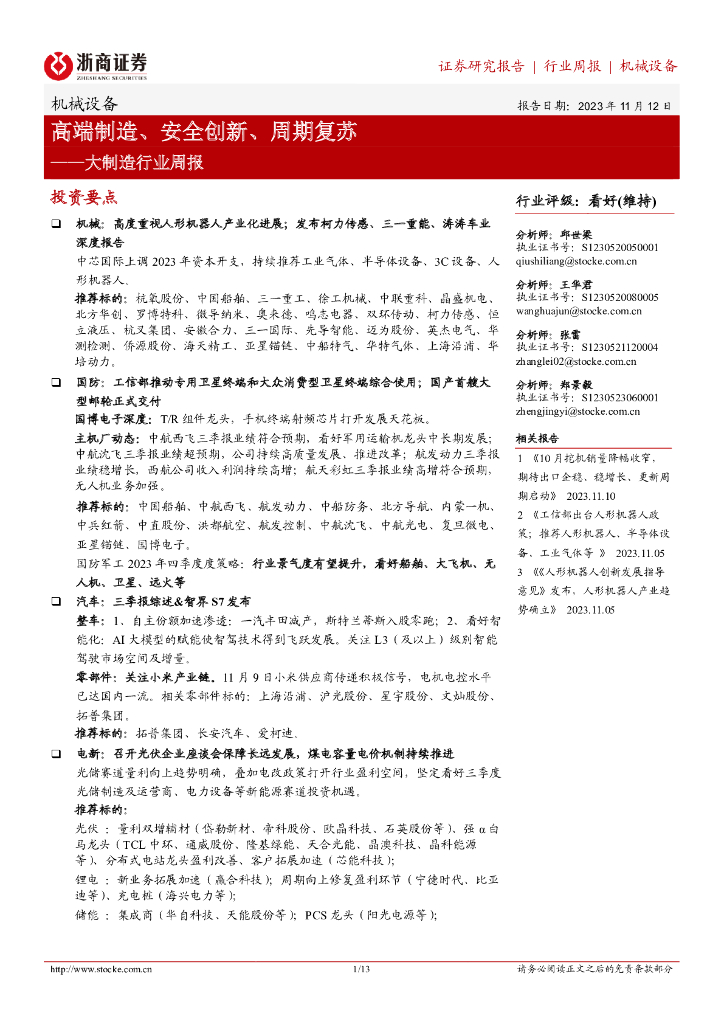 浙商证券:大制造行业周报:高端制造、安全创新、周期复苏.pdf