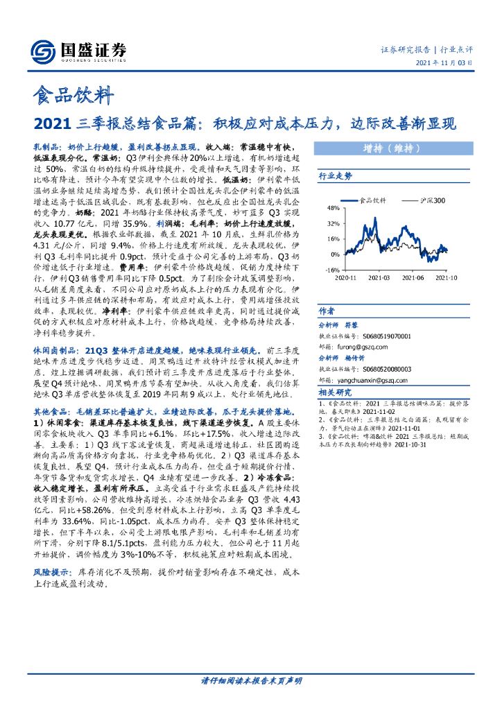 国盛证券:食品饮料:2021三季报总结食品篇:积极应对成本压力,边际改善渐显现.pdf