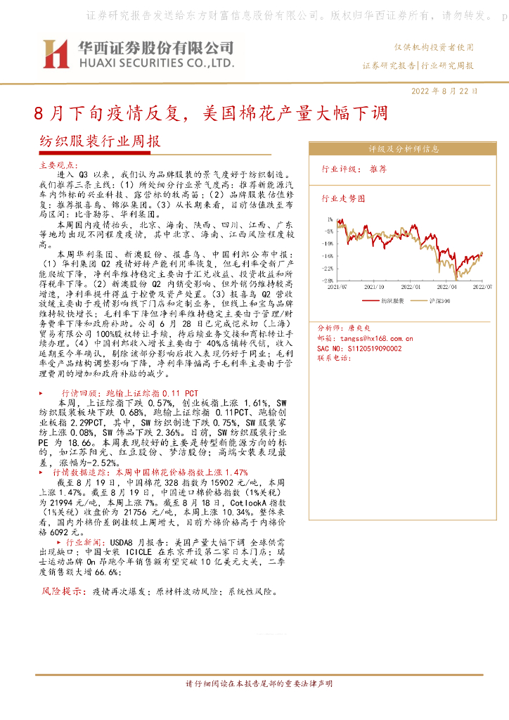 华西证券:纺织服装行业周报:8月下旬疫情反复,美国棉花产量大幅下调.pdf