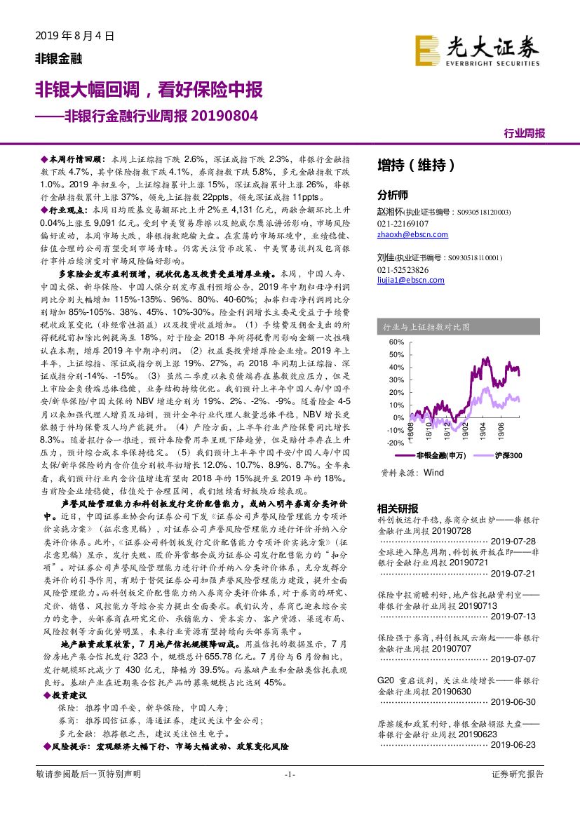 光大证券:非银行金融行业周报:非银大幅回调,看好保险中报.pdf