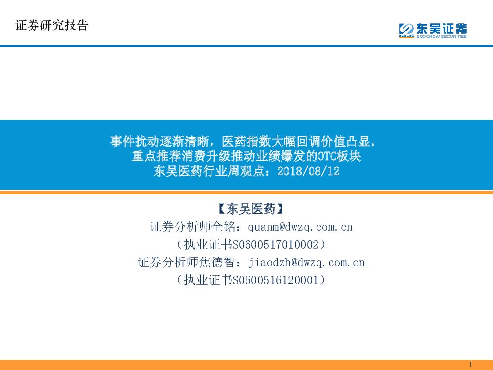 东吴证券:东吴医药行业周观点:事件扰动逐渐清晰,医药指数大幅回调价值凸显,重点推荐消费升级推动业绩爆发的OTC板块.pdf