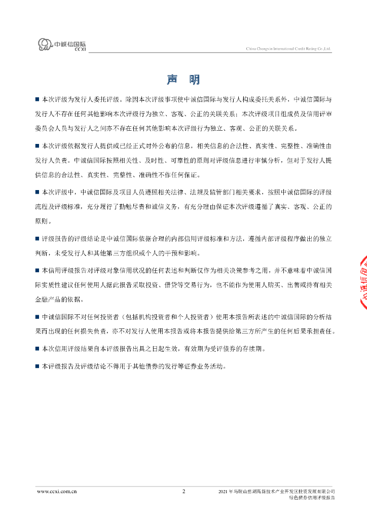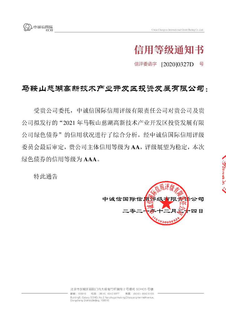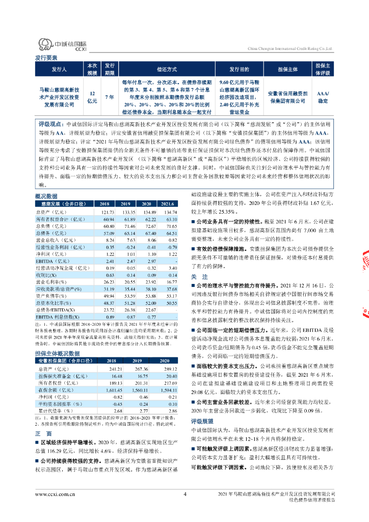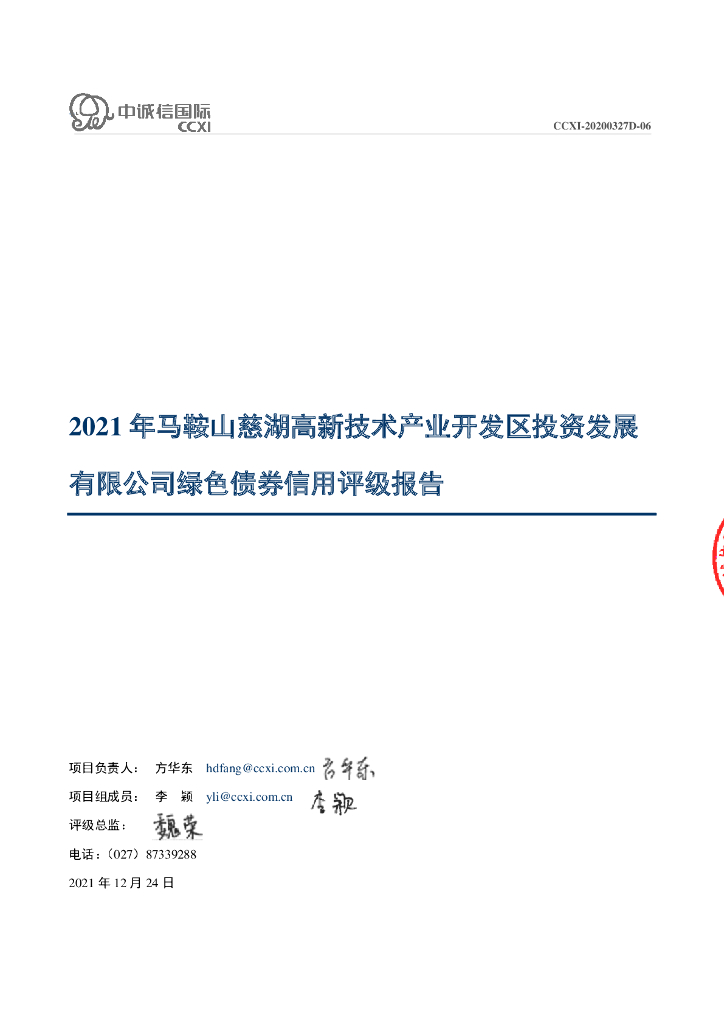 中诚信:2021年马鞍山慈湖高新技术产业开发区投资发展有限公司绿色债券信用评级报告.pdf