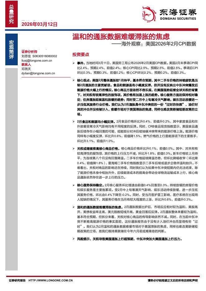 东海证券:海外观察:美国2026年2月CPI数据:温和的通胀数据难缓滞胀的焦虑-260312.pdf