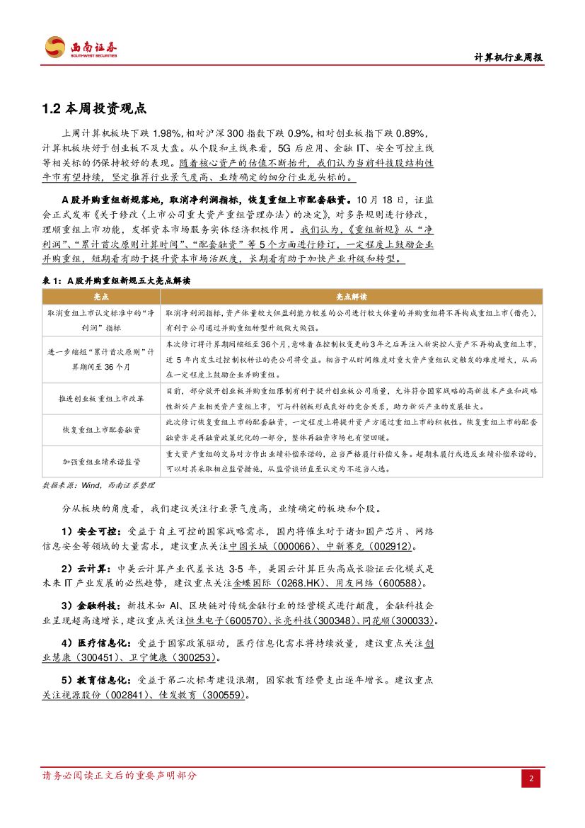 西南证券:计算机行业周报:并购重组新规落地,市场活跃度有望提升.pdf
