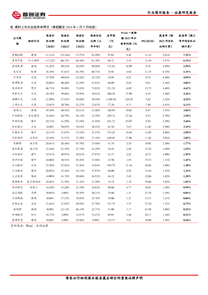 首创证券:建材行业简评报告:市场风险偏好降低,关注高股息率建材企业.pdf