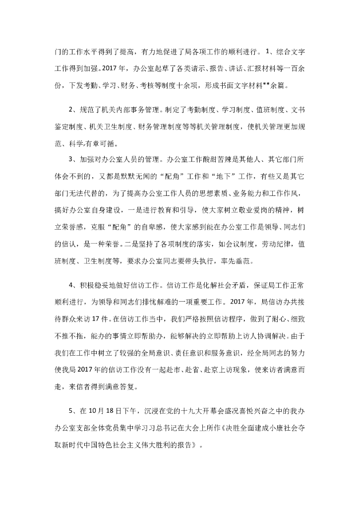 办公室个人17年终总结和18工作计划(包含十九大学习).doc