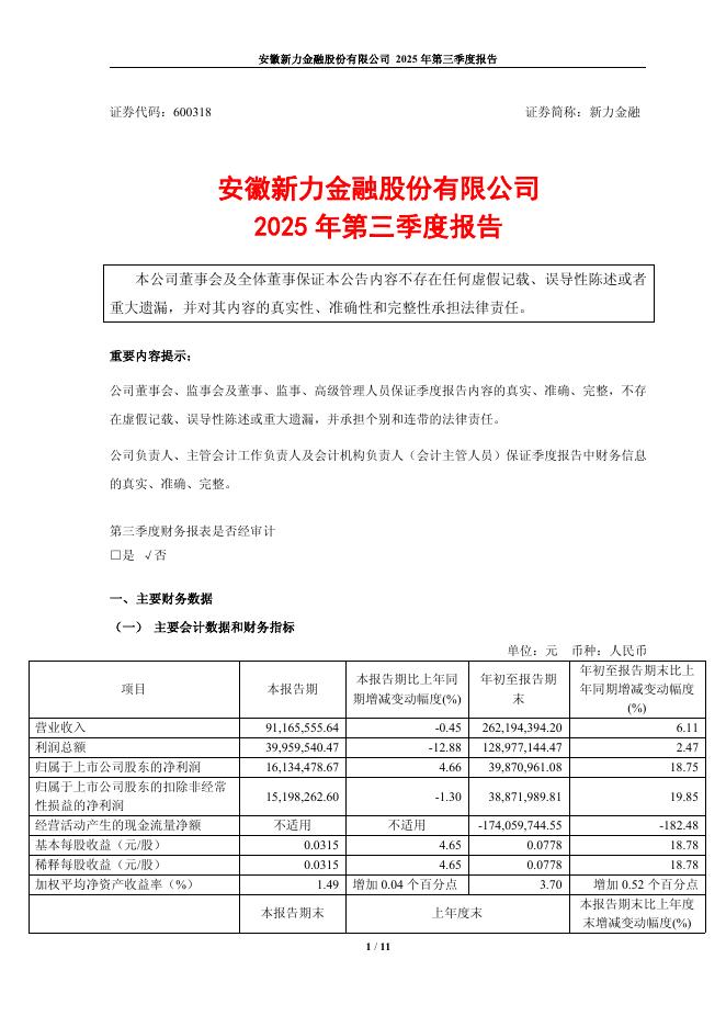 600318-新力金融:安徽新力金融股份有限公司2025年三季度报告.pdf