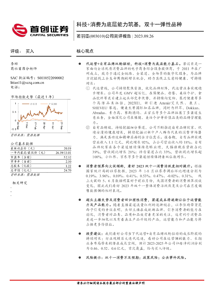 首创证券:若羽臣(003010)-公司简评报告:科技+消费为底层能力筑基,双十一弹性品种.pdf