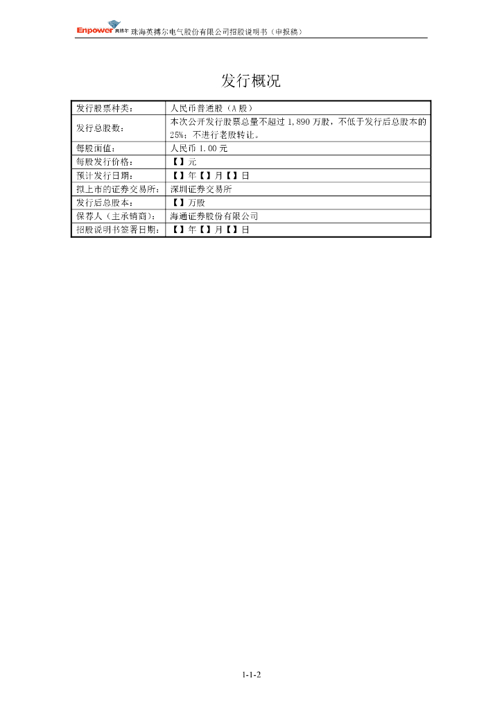珠海英搏尔电气股份有限公司深交所创业板IPO上市招股说明书.pdf