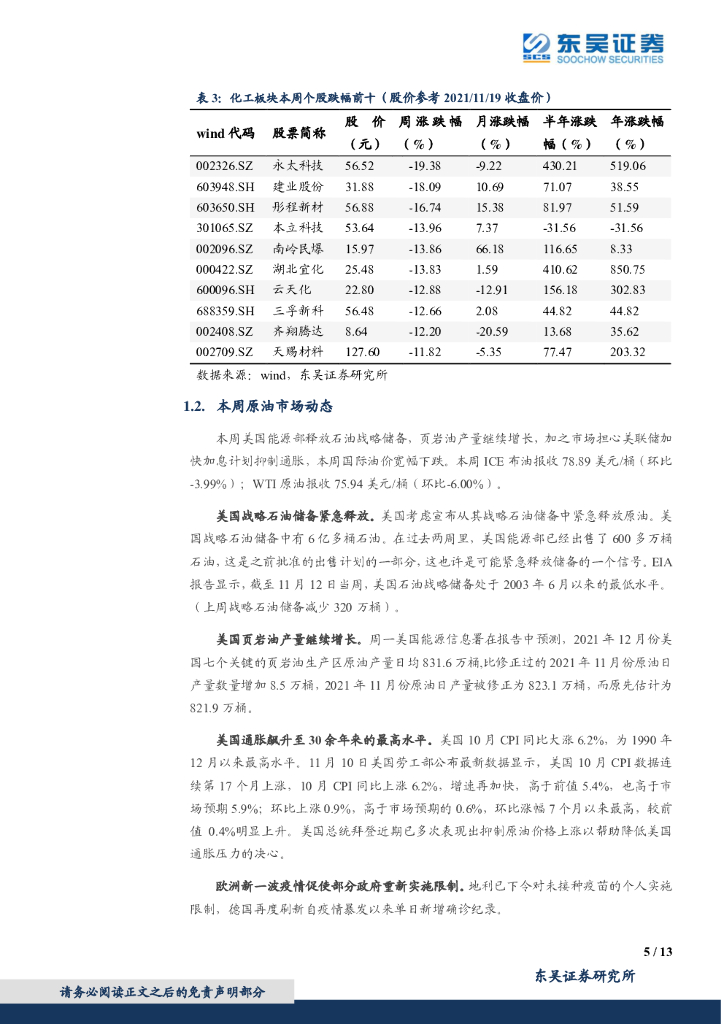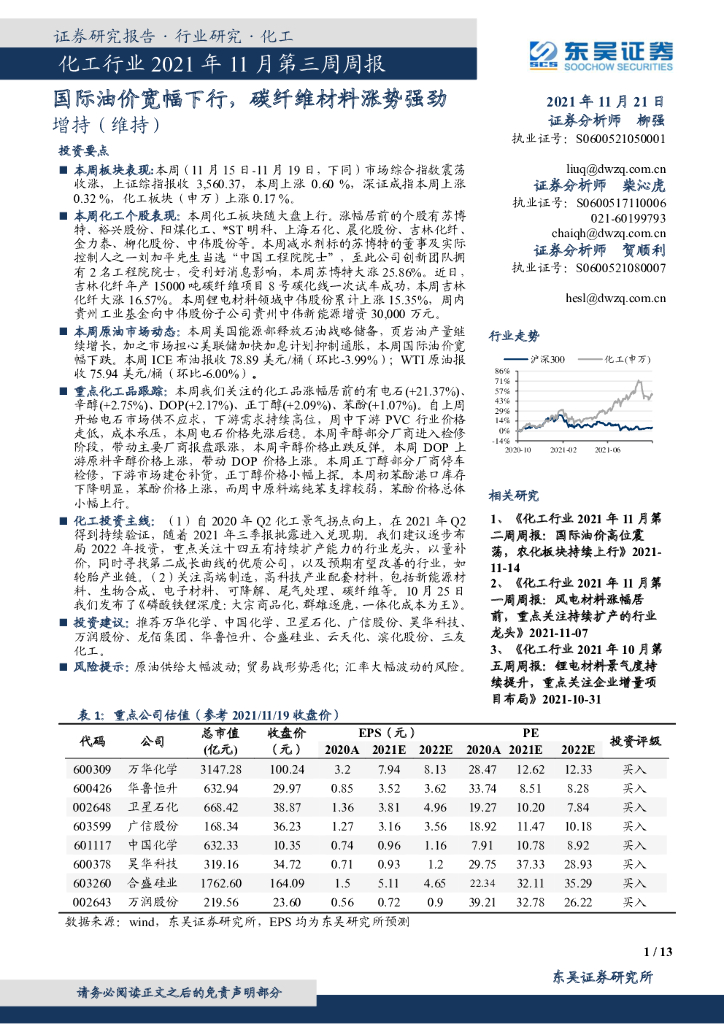 东吴证券:化工行业2021年11月第三周周报:国际油价宽幅下行,碳纤维材料涨势强劲.pdf