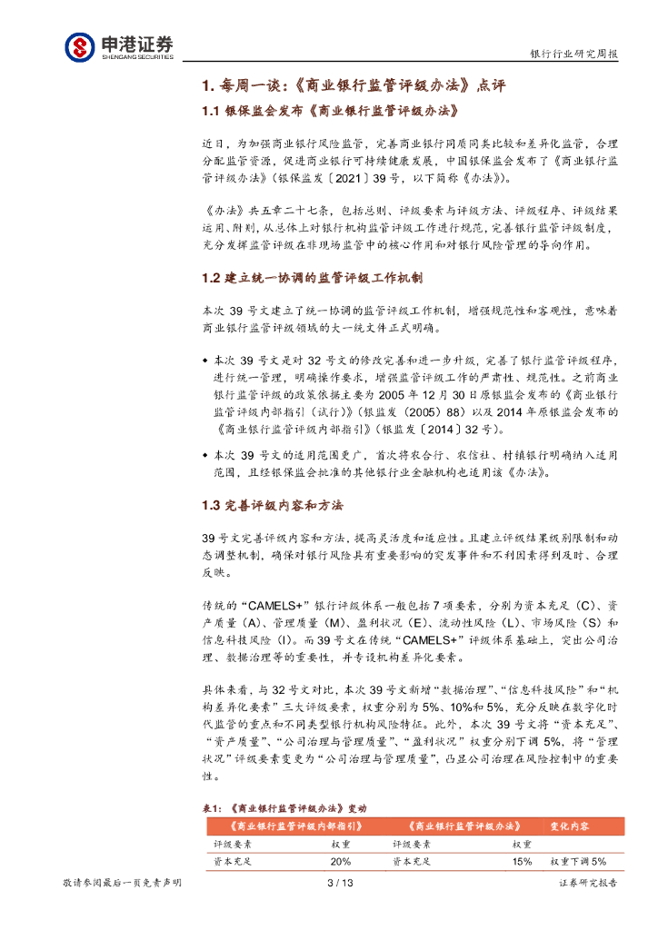 申港证券:银行行业研究周报:《商业银行监管评级办法》点评.pdf