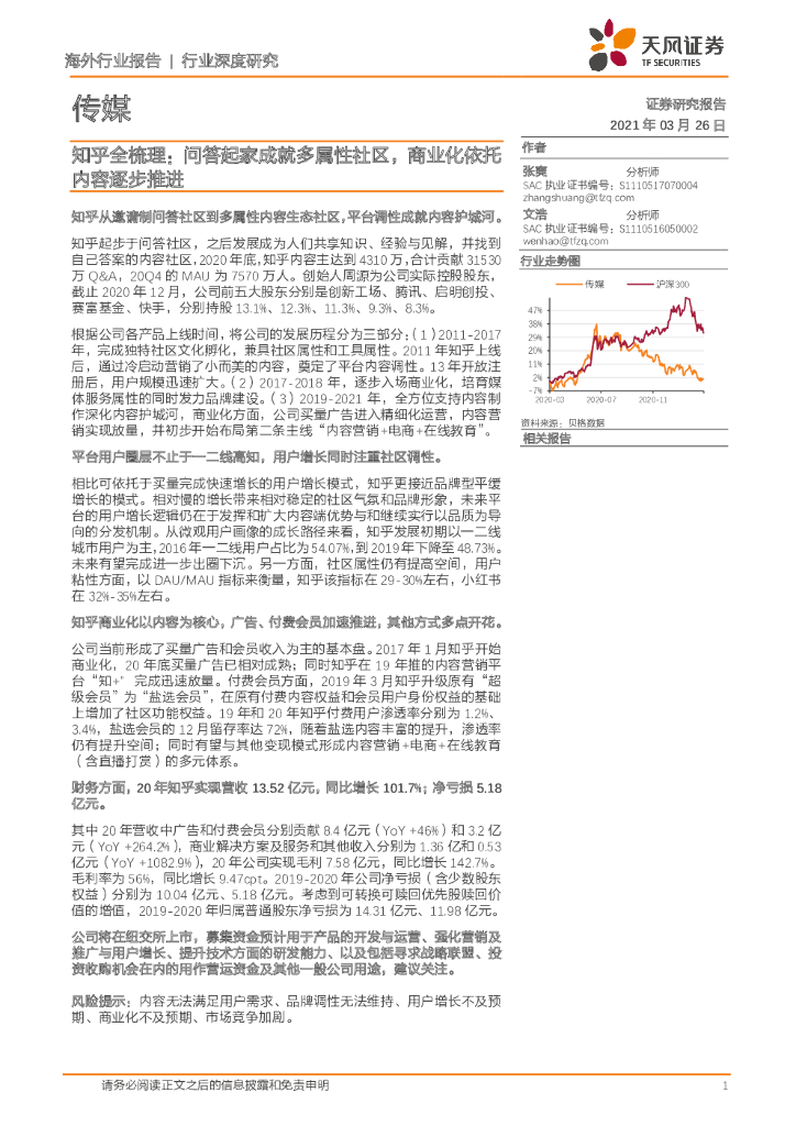天风证券:传媒行业深度研究:知乎全梳理:问答起家成就多属性社区,商业化依托内容逐步推进.pdf