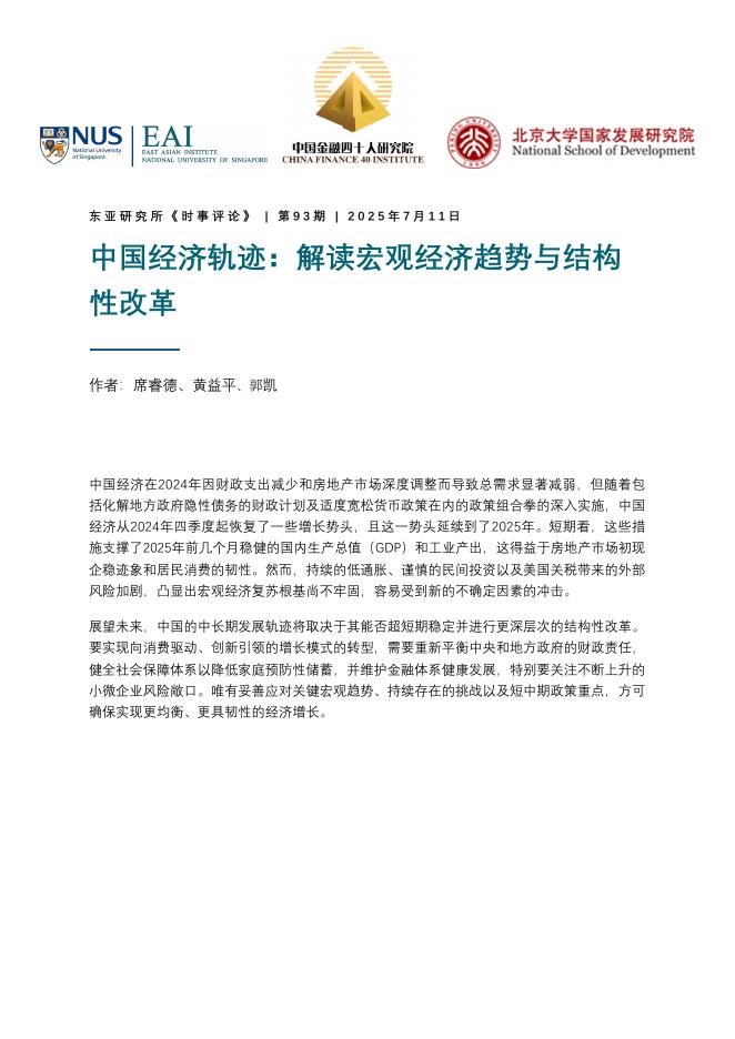 北大国发院&CF40研究院:2025年中国经济轨迹:解读宏观经济趋势与结构性改革简报.pdf