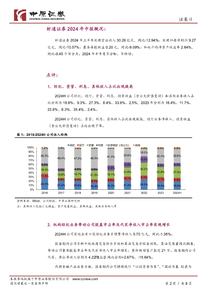 中原证券:财通证券(601108)-2024年中报点评:机构经纪发力,资管优势稳固.pdf