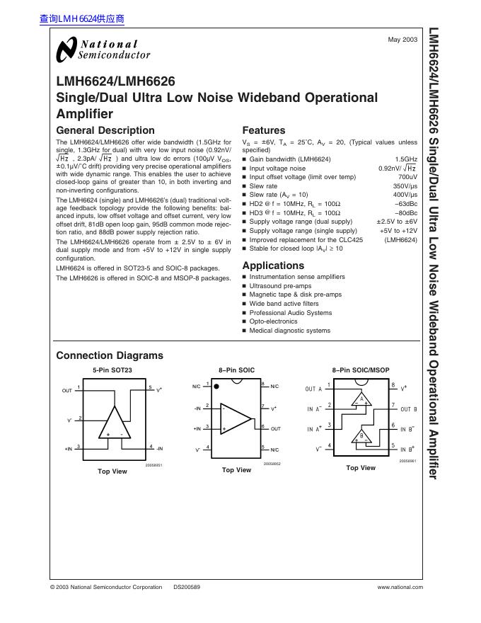 NATIONAL SEMICONDUCTOR - May 27, 2008 DS15BA101 1.5 Gbps Differential Buffer with Adjustable Output Voltage General 说明书