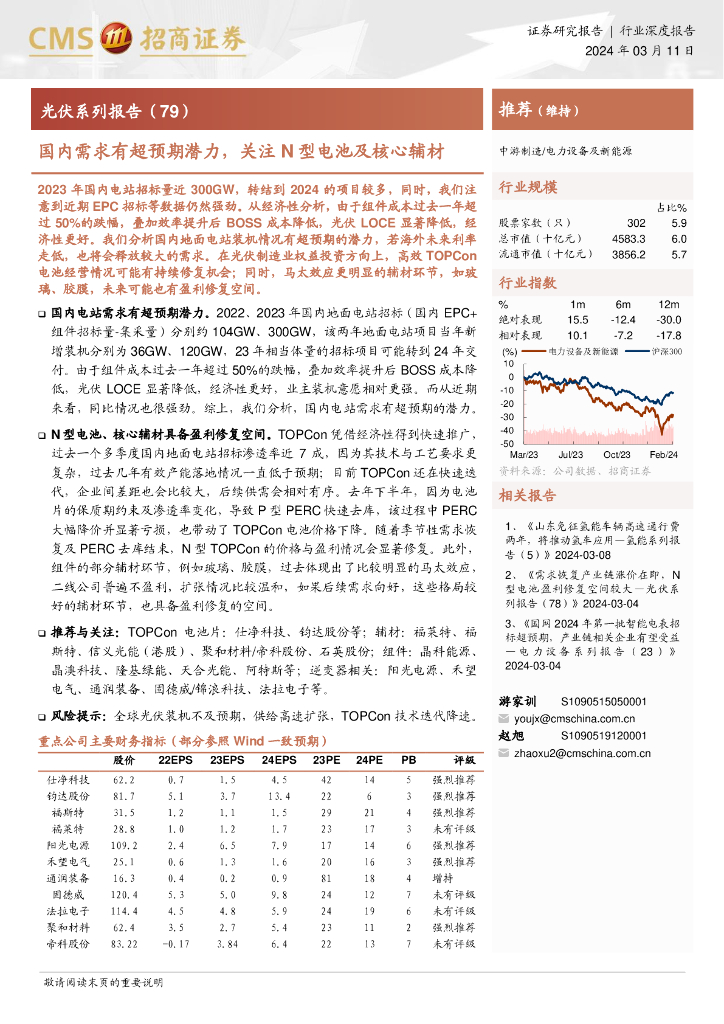 招商证券:光伏系列报告(79):国内需求有超预期潜力,关注N型电池及核心辅材.pdf