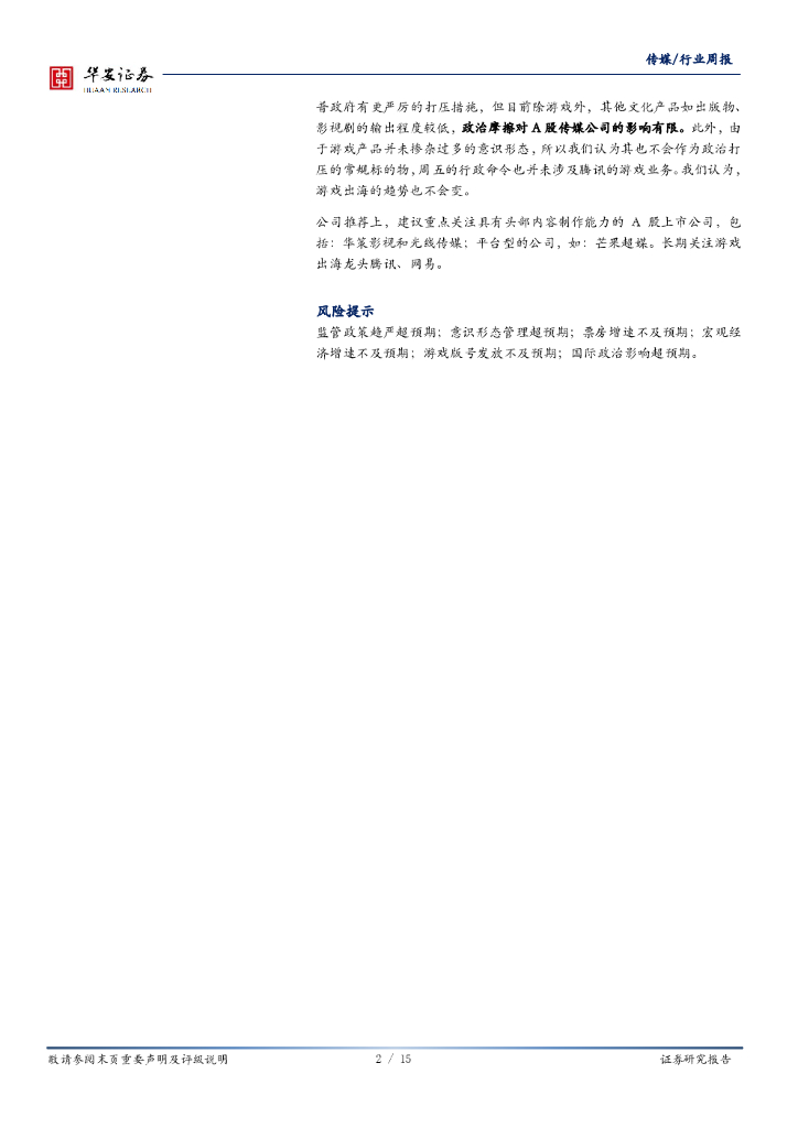 华安证券:传媒行业周报:短期打压影响有限,长期文化输出逻辑不变.pdf