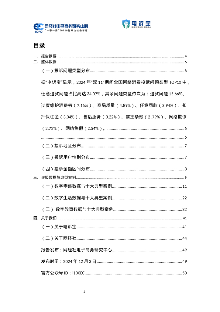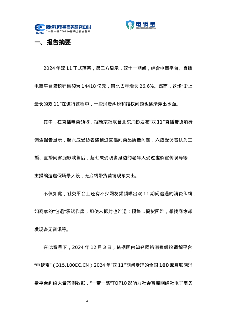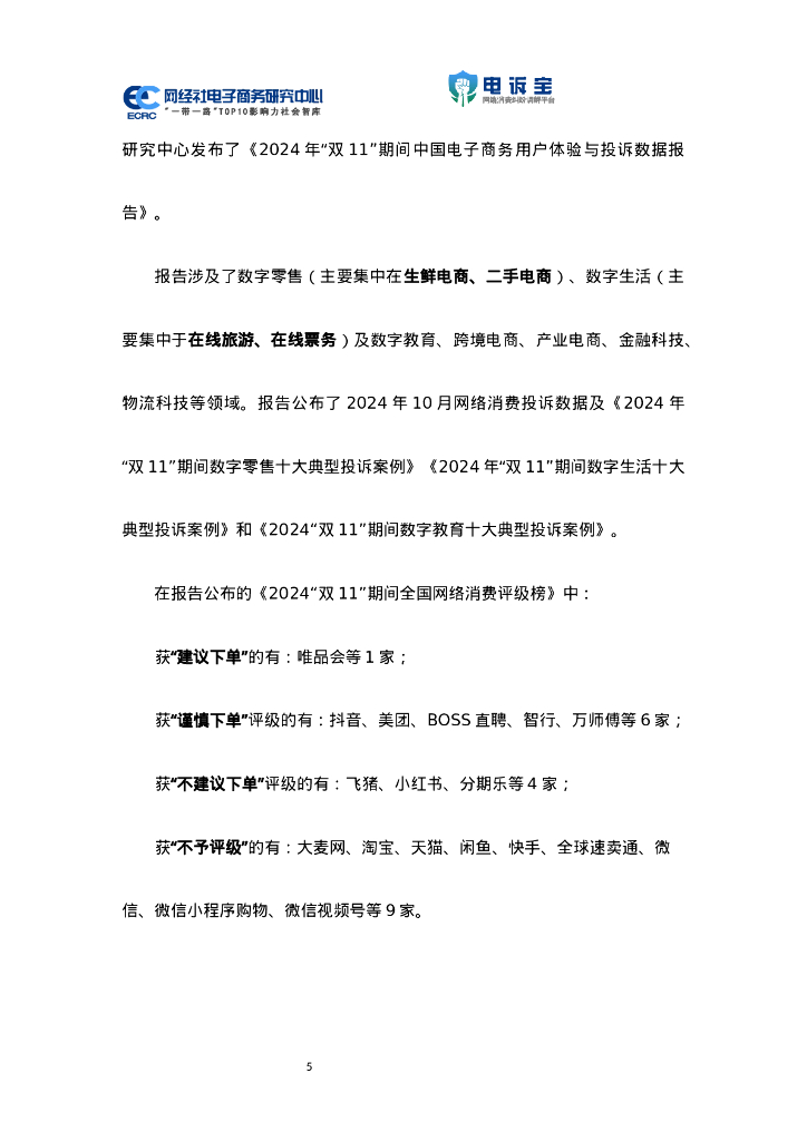 网经社:2024年“双11”期间中国电子商务用户体验与投诉数据报告.doc