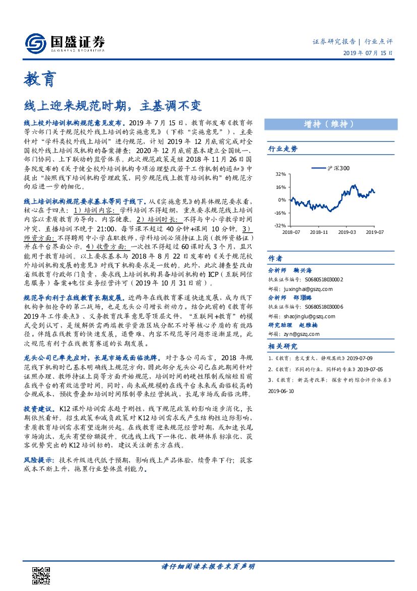 国盛证券:教育行业点评:线上迎来规范时期,主基调不变.pdf