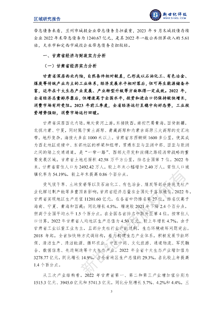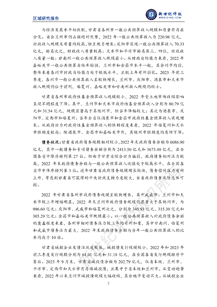 新世纪评级:甘肃省及下辖各州市经济财政实力与债务研究(2023).pdf