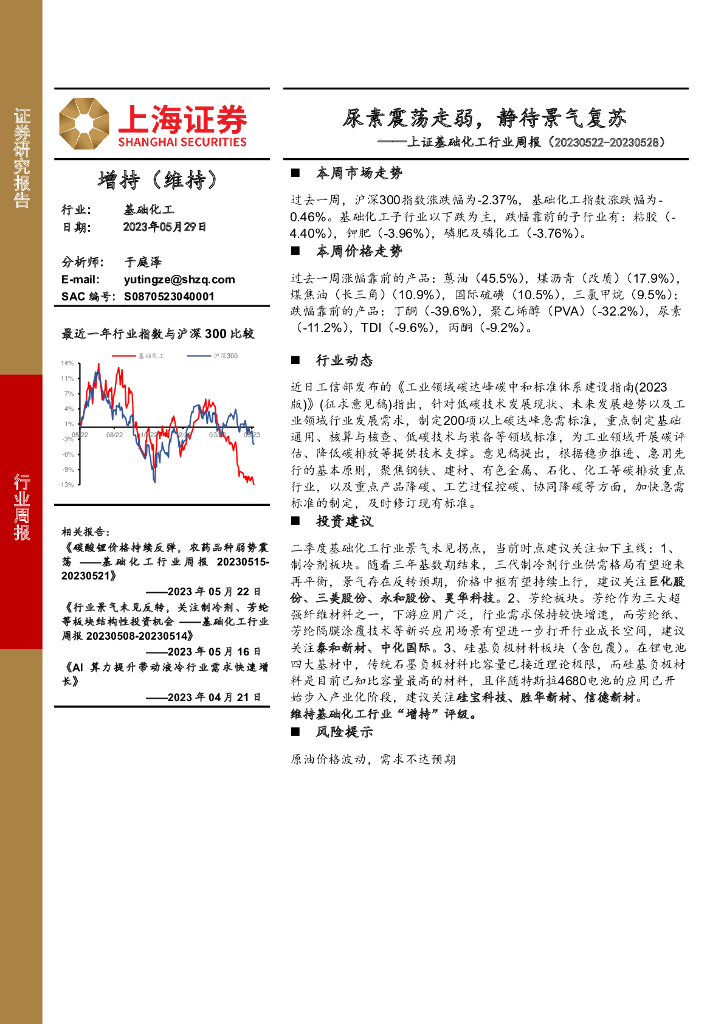 上海证券:上证基础化工行业周报:尿素震荡走弱,静待景气复苏.pdf