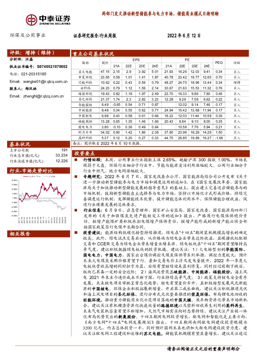 中泰证券:环保及公用事业行业周报:两部门发文推动新型储能参与电力市场,储能商业模式日渐明晰.pdf
