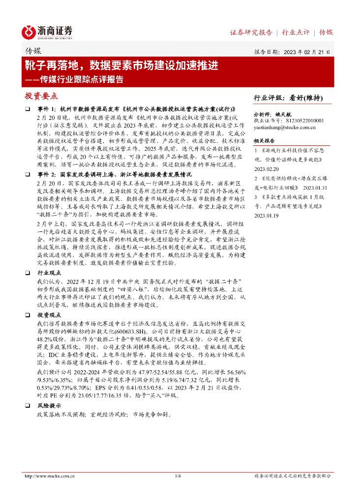 浙商证券:传媒行业跟踪点评报告:靴子再落地,数据要素市场建设加速推进.pdf