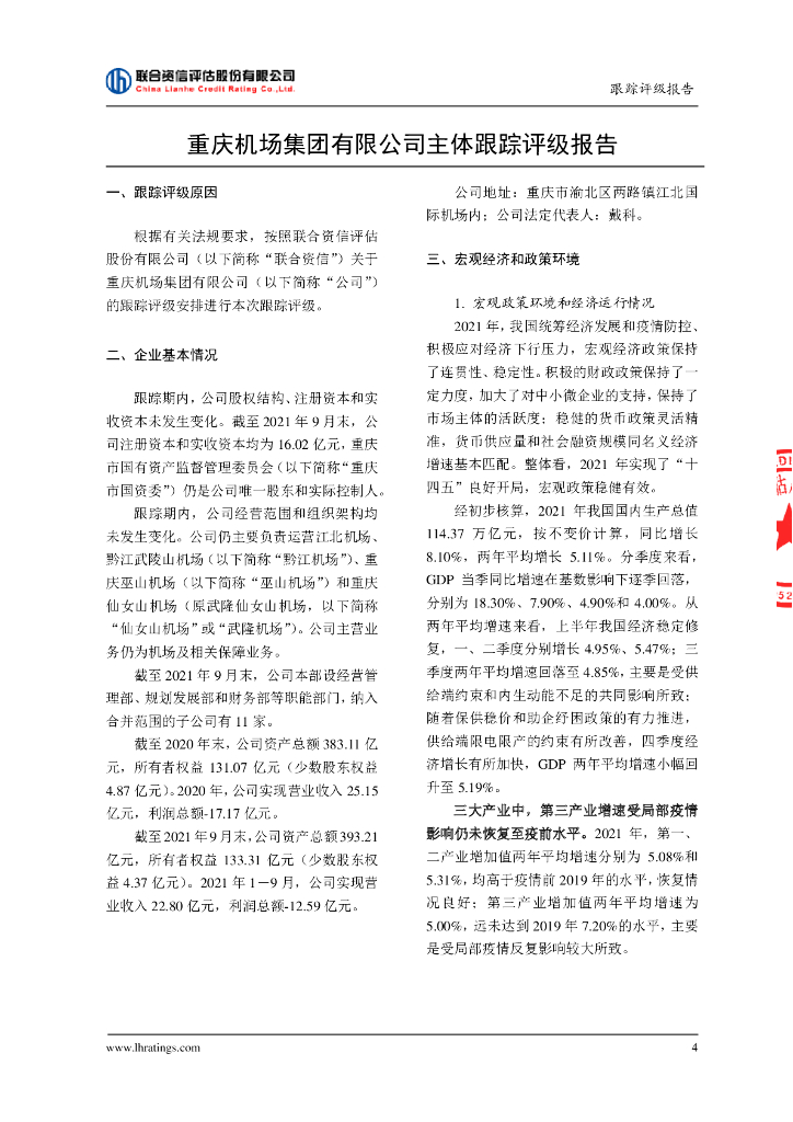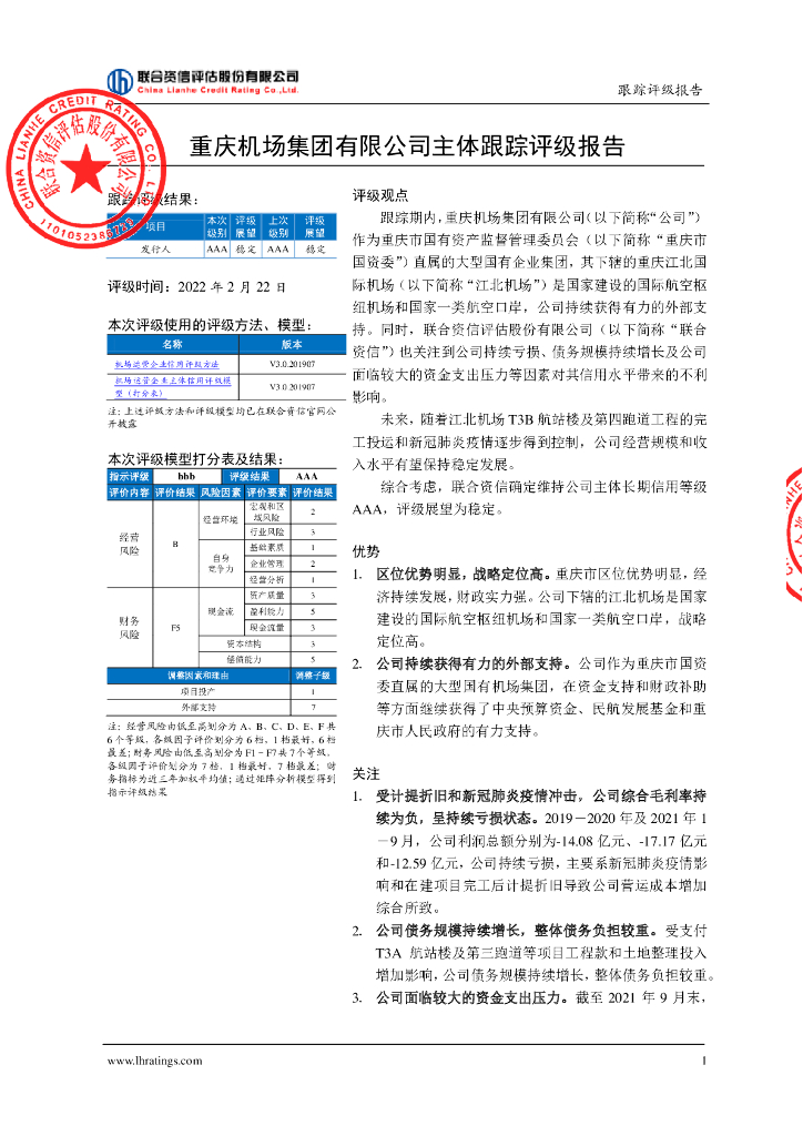 联合资信:重庆机场集团有限公司主体跟踪评级报告.pdf