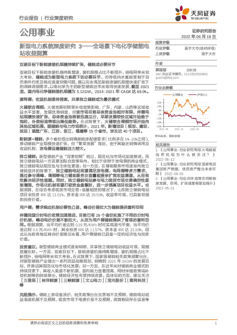 天风证券:公用事业行业深度研究:新型电力系统深度研究3-全场景下电化学储能电站收益测算.pdf