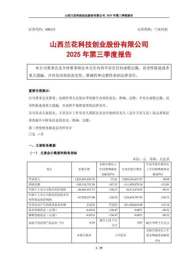 600123-兰花科创:兰花科创2025年第三季度报告.pdf