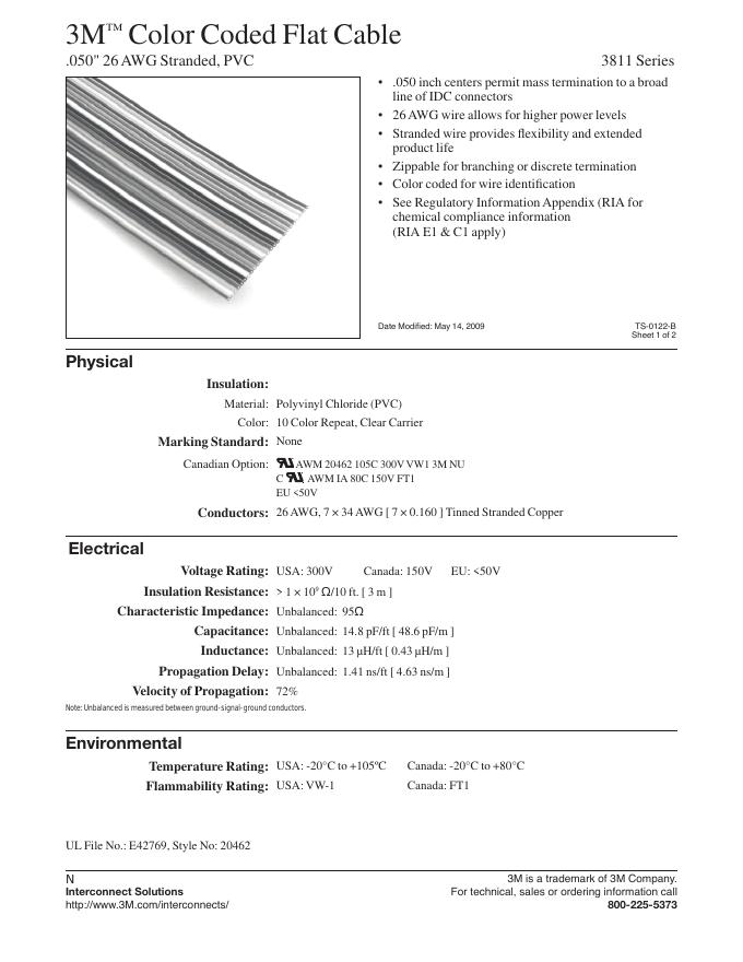 3M 3811 Series Color Coded Flat Cable 数据手册.pdf